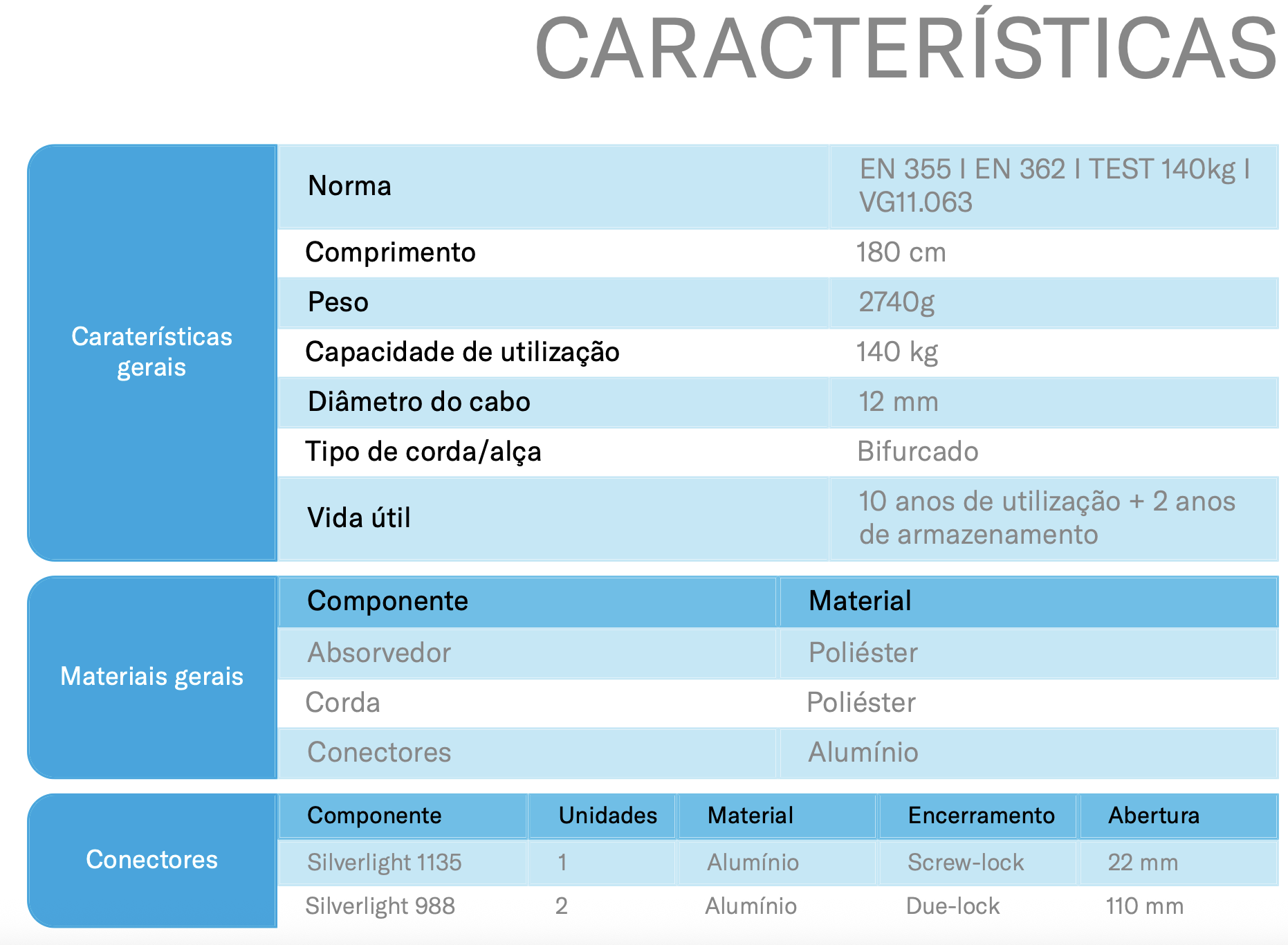 • Função: Projetado para reduzir o impacto de quedas para menos de 6 kN.
